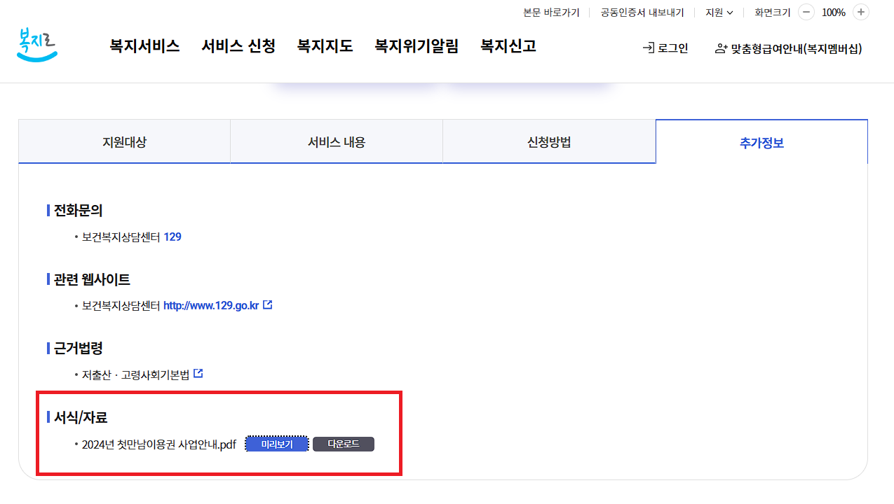 아래의 버튼을 통해서 복지로 홈페이지에서 온라인으로 간편하게 신청하실 수 있습니다.